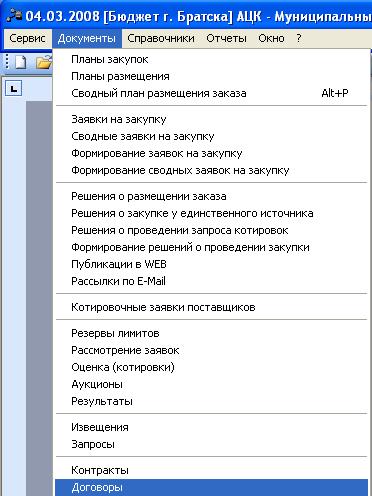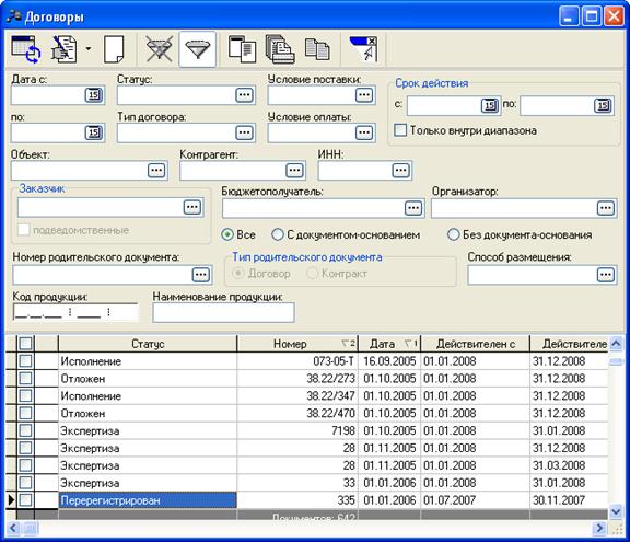 Список ЭД «Договор» открывается через пункт меню ДокументыÞДоговоры, см рис.1.