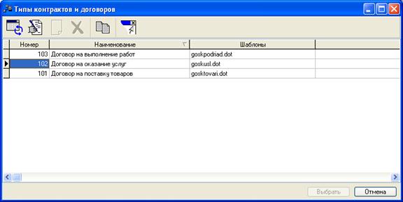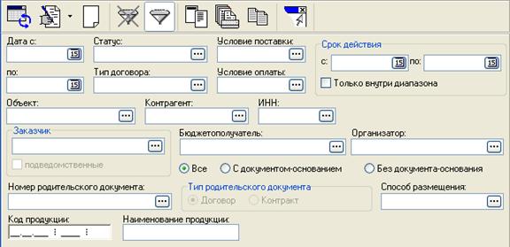 В верхней части списка документов находится панель инструментов, на которой располагаются стандартные функциональные кнопки. С их помощью можно создать новый контракт
