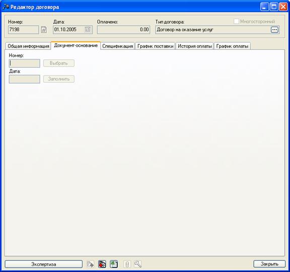 Рис.6. Редактор договора. Закладка «Документ-основание»