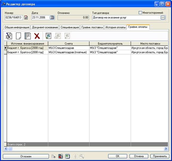 Рис.13. Редактор договора. Закладка «График оплаты»