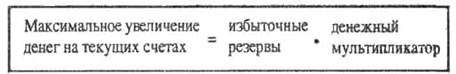 Определить максимальное количество новых денег на текущем счету, которое может быть создано банковской системой на основе любого данного количества избыточных резервов можно по формуле: