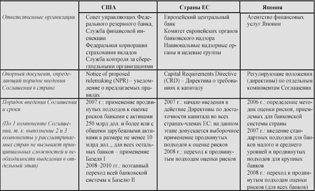 Приложение 4. Основные принципы введения Базеля II в США, странах ЕС и Японии.