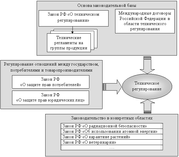 Для выполнения перечисленных требований и законодательного закрепления изменений, произошедших в области технического законодательства, в 2003 году в России был принят закон «О техническом регулировании». Закон определяет основные понятия, устанавливает правила и требования государственного контроля технических характеристик производства и выпускаемой продукции.