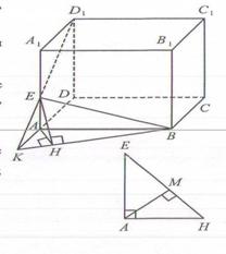 Из точки Е опустим перпендикуляр ЕН на прямую КВ, тогда отрезок АН (проекция ЕН) перпендикулярен прямой КВ. Прямая КВ перпендикулярна плоскости АЕН, следовательно, плоскости ВЕКи АЕН перпендикулярны. Высота АМ треугольника АЕН перпендикулярна плоскости ВЕК, следовательно, АМ - расстояние от точки А до плоскости