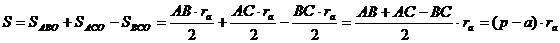 Решение. Рассмотрим произвольный треугольник АВС. Обозначим его площадь - Ѕ, полупериметр - р, радиус вписанной окружности – r, а сторона ВС=