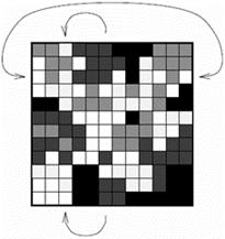 Ячеистые генетические алгоритмы (Cellular Genetic Algorithms) – модель параллельных генетических алгоритмов. Пусть дано 2500 процессов, расположенных на сетке размером 50×50 ячеек, замкнутой, как показано на рис. 18 (левая сторона замыкается с правой, верхняя – с нижней, получается тор).