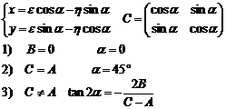С помощью поворота можно исключить смежные произведения переменных, каждая их которых определяет свою поверхность (эллипсоид, гиперболоид, параболоид, конус, цилиндроид).
