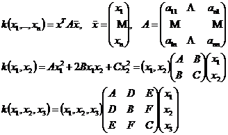 Вопрос № 28: Квадратичная форма многих переменных и её матрица: