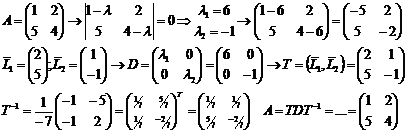 Если квадратная матрицы порядка п имеет несколько линейно независимых собственных векторов и соответствующих собственных значений, то она может быть приведена к диагональному виду, причём элементы диагональной матрицы являются собственные значения.