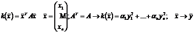 , где U состоит из ортогональной и нормированной системы собственных векторов матрицы А квадратичной формы, при этом весовыми коэффициентами канонического представления являются собственный значения матрицы А.