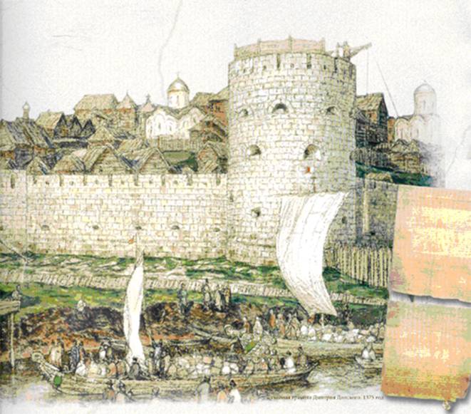 . Вероятный вид белокаменного Кремля Дмитрия Донского. Конец XIV века.