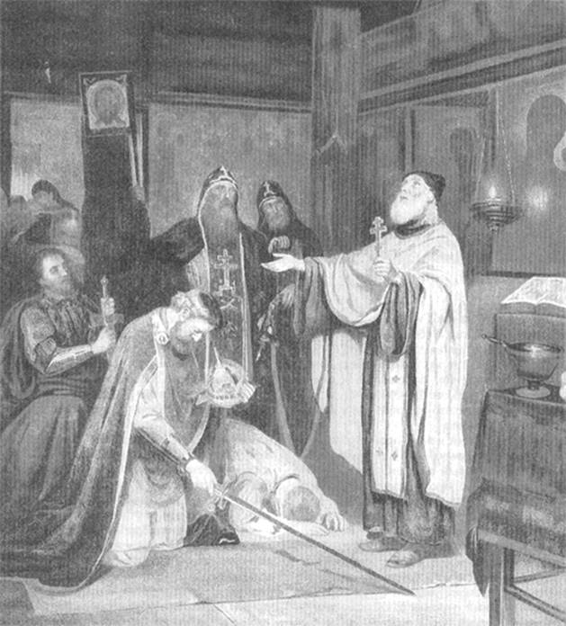. Преподобный Сергий благословляет Дмитрия Донского на битву с Мамаем.