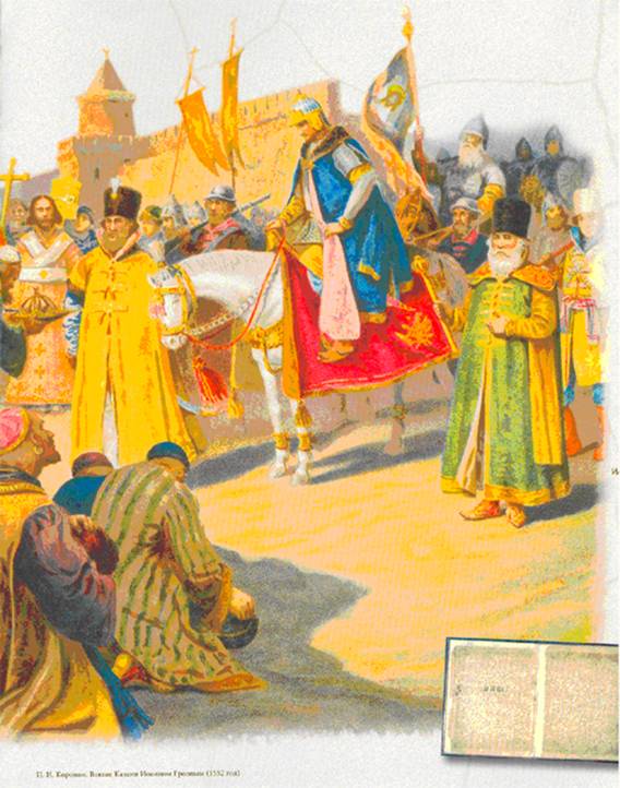 Крупнейшие же успехи были достигнуты правительством Сильвестра и Адашева в делах внешних. В 1552г. русские войска овладели Казанью, хан Едигер был пленен, в бывшей татарской столице был поставлен русский воевода князь Александр Горбатый, особо отличившийся при взятии города. Героем взятия Казани стал также князь Андрей Курбский, чей полк первым взошел на крепостные стены.
