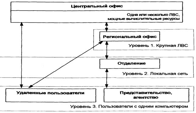 Отделения страховой компании имеют обычно небольшую локальную сеть, включающую несколько персональных компьютеров. Связь с региональным офисом происходит по заранее составленному расписанию в определенные часы, однако не исключается необходимость незапланированного срочного доступа.