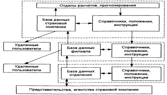 Широкое использование распределенных вычислительных систем в страховом деле предопределили характер самих прикладных задач и организацию их решения. Сотрудники, отделы, филиалы страховой компании, отдельные потребители информации (агенты, брокеры), как правило, рассредоточены по некоторой территории. Эти пользователи достаточно автономно решают свои задачи, поэтому заинтересованы в использовании собственных вычислительных ресурсов. Однако решаемые ими задачи тесно взаимосвязаны, поэтому их вычислительные средства должны быть объединены в единую систему. Адекватным решением в такой ситуации является использование вычислительных сетей (локальных, открытых, глобальных).