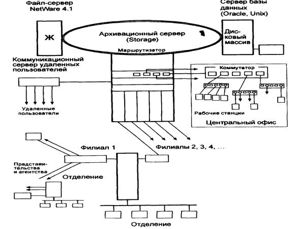 На рис. 10 приведена примерная структурная схема сетевого комплекса страховой компания.