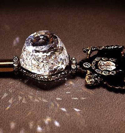 «Куллинан-1» 530,2 кар. Вместе со 104 другими камнями, полученными при расколе крупнейшего из когда-либо найденных алмазов (3106 кар) — «Куллинана» (был назван именем президента алмазодобывающей компании), огранен фирмой „Асшер" в Амстердаме в 1908 г. Украшает скипетр английского короля Эдуарда VII, хранящийся в сокровищнице лондонского Тауэра. Самый большой ограненный алмаз в мире. Его называют также «Звезда Африки» .
