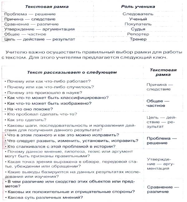 Каждая текстовая рамка задает определенное направление в движении мысли учащихся. Они как бы выступают в определенной роли, работая с данным текстом.