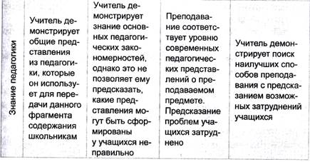 Сетка для взаимоанализа знаний преподаваемого предмета и педагогики выглядит следующим образом.