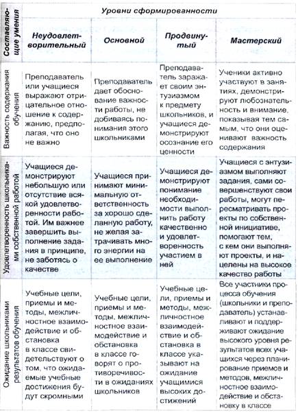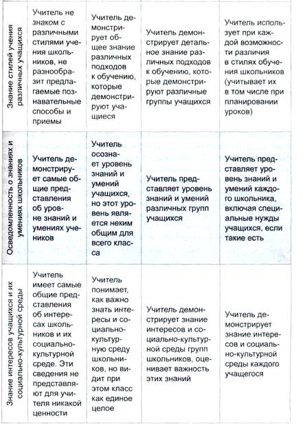 Дадим некоторые пояснения к этой таблице. Учитель никогда не преподает в вакууме, он обучает школьников. О повышении качества обучения можно говорить только тогда, когда учитель имеет ясное представление об учащихся.
