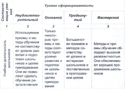 Обобщая результаты оценки деятельности учителя в четырех названных выше сферах, можно сделать заключение об уровне его интегративной компетентности, владении обучающими стратегиями, умении руководить работой школьников и т. д.