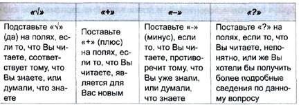 «+» — то, что является новой, неизвестной ранее информацией; «?» — то, что непонятно или о чем хотелось бы получить дополнительную информацию.