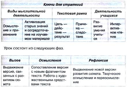С информационными текстами учителя работают на каждом уроке. Нам показалось необходимым продемонстрировать использование этих приемов на разных уроках у различных учителей. Это даст возможность увидеть вариативность использования в рамках базовой модели и более подробно рассмотреть сами приемы.