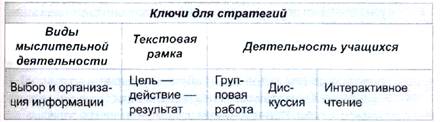 Читая текст, учащиеся делают пометки карандашом (метод «Инсерт»). Используя ключевые слова и фразы, заполняют таблицу с графами: