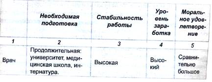 Сравнительная таблица. Этот прием предполагает сравнение трех и более аспектов или вопросов. Таблицу можно строить так: по горизонтали — то, что подлежит сравнению, а по вертикали — различные черты и свойства, по которым это сравнение происходит. К примеру, в концептуальной таблице можно сравнивать несколько различных профессий.