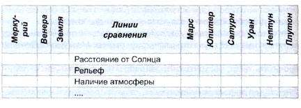 На стадии рефлексии учащиеся заполняют сравнительную таблицу «Планеты Солнечной системы».