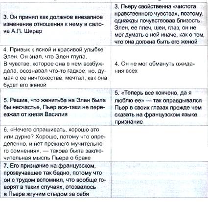В результате в тетради одного из учеников получилась следующая таблица. Виновен ли Пьер в своем браке не по любви?