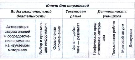 Стадия вызова осуществляется при помощи различных приемов. Однако в данной стратегии может и не быть специально организованной фазы вызова как таковой, так как задание — организация работы с текстом большого объема — само по себе служит вызовом.