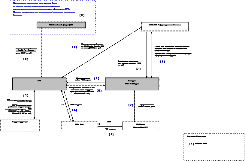- залог торговых знаков, которыми владеют Должники; залог всех внутригрупповых кредитов, превышающих $1млн.; Контролируемые счета: все счета Должников будут открыты в одном банке. В отношении Контролируемых счетов должны применяться процедуры управления денежными средствами, описанные в кредитном соглашении; Соглашение о безакцептном списании, позволяющее безакцептное снятие денежных средств с Контролируемых счетов в целях уплаты купона, выплаты взноса в счет основного долга, обязательной досрочной выплаты суммы, подлежащей списанию со счета; Соглашение о субординировании: все внутригрупповые кредиты являются второстепенными по отношению к займу, предоставленному в виде Нот.