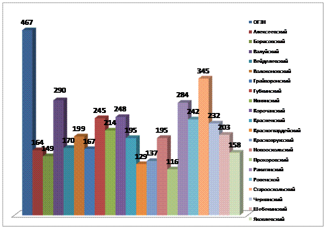 Наибольшее количество проверок соблюдения земельного законодательства проведено отделом государственного земельного надзора Управления (467), Старооскольским отделом (345), Валуйским (290), Ракитянским (284), Губкинским (245), Ровеньским (242), Ивнянским (214) (рис. 12).