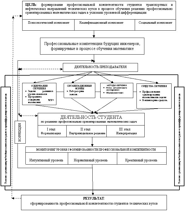 3. Разработана структурно-функциональная модель формирования профессиональной компетентности студентов транспортных и нефтегазовых направлений в процессе обучения решению профессионально ориентированных математических задач в условиях уровневой дифференциации.