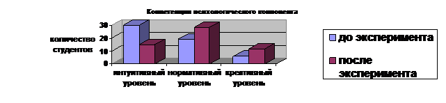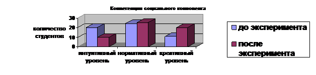 На диаграммах (рис. 5) отражена положительная динамика уровня сформированности компонентов профессиональной компетентности будущих инженеров (квалификационный, психологический и социальный).