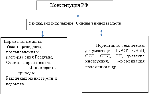 Цели занятия: изучение структуры нормативной и нормативно-технической документации по охране окружающей природной среды, ознакомление с некоторыми основными законами и нормативными актами, приобретение практических навыков подбора нормативно-технической документации.
