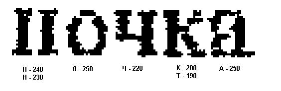 Упомянутый в разделе 2 алгоритм [6] непосредственно не применим для решения поставленной задачи, потому что распознавание отдельных символов в нем производится независимо от других символов в слове. Пусть, к примеру, заданы слова-кандидаты: почта и ночка. Алфавит, таким образом, состоит из букв: а, к, н, о, п, т, ч. Допустим, оценки распознавания букв слова составили (рис 3):