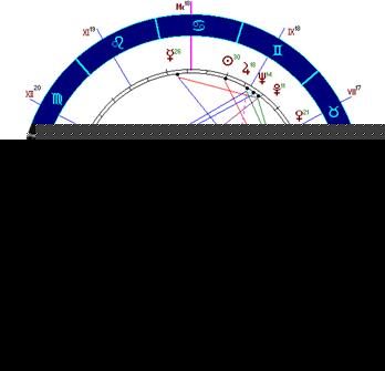 Однако с точность в один градус Марс приходит в соединение с Солнцем, асцендент в квадратуру с Венерой. Появляется и два квиконса, которыми можно было бы и пренебречь, если бы они не шли от асцендента к куспидам 6-го и 8-го домов. Если использовать 2,5 прогрессию Марса, то он окажется точно на Луне, а транзитный Марс на день несчастного случая был в оппозиции с Юпитером.