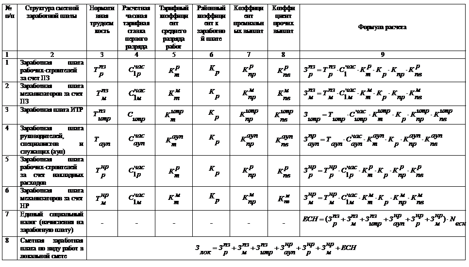 Для расчета размера сметной заработной платы рабочих в составе прямых затрат по виду работ предлагается использовать следующую формулу:
