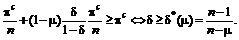 дисконтирующий множитель каждого участника должен превышать граничное значение, которое в данном случае зависит от числа конкурентов