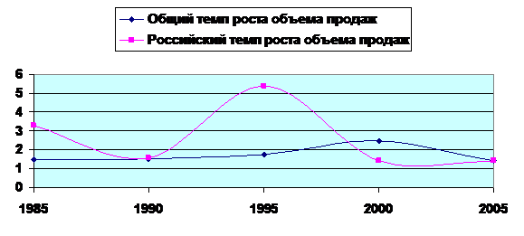 Объем продаж | 1980 | 1985 | 1990 | 1995 | 2000 | 2005 |