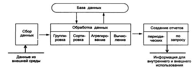 Ими являются сбор данных, обработка данных, хранение данных, формирование отчетности.