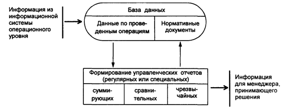 Входная информация поступает из систем операционного уровня. Выходная информация формируется в виде управленческих отчетов в удобном для принятия решения виде.
