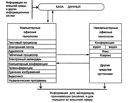 Информационная технология автоматизированного офиса — организация и поддержка коммуникационных процессов как внутри организации, так и с внешней средой на базе компьютерных сетей и других современных средств передачи и работы с информацией.