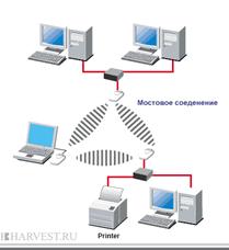 Компьютеры объединены в проводную сеть. К каждой группе сетей подключены точки доступа, которые соединяются друг с другом по радио каналу. Этот режим предназначен для объединения двух и более проводных сетей. Подключение беспроводных клиентов к точке доступа, работающей в режиме моста невозможно.