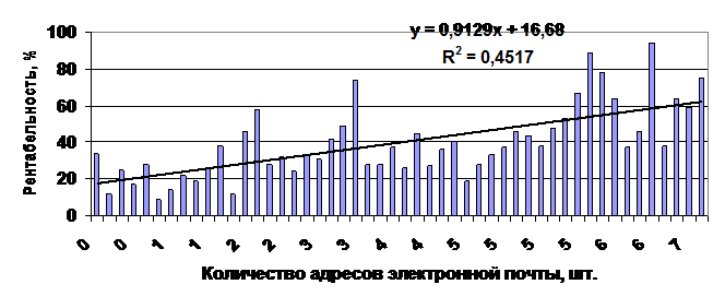 Рис.2. Влияние электронной почты на рентабельность продаж
