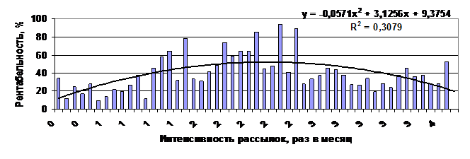 Рис.3. Влияние интенсивности рассылок по электронной почты на рентабельность продаж