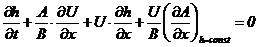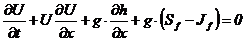 где А – площадь поперечного сечения; Т – время; Q – расход; х – горизонтальная координата в направлении течения; g – гравитационное ускорение; h – глубина воды; Jf – продольный уклон дна канала; Sf – уклон трения; U – средняя скорость воды.