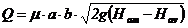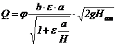 где φ – коэффициент который отражает потери напора (φ = f(Fr); Fr – число Фруда); ε – коэффициент сжатия (ε = f(a/Ham)); a – открытие затвора; Ham – глубина воды в верхнем бьефе; Hav – глубина воды в нижнем бьефе; b –пролет отверстия перекрываемого затвором; μ – коэффициент расхода.